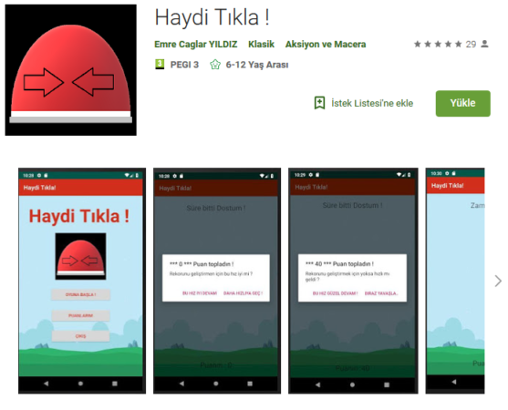 Android dünyasına giriş yapmamın hemen sonrasında basit bir ekran yakalama oyunu olan Haydi Tıkla ! kodlamıştım ve yakın çevrem tarafından baya sevilmişti. Sizlerede fikir...